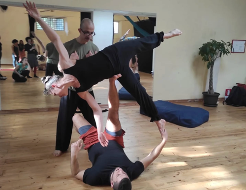 Grazie all’acroyoga possiamo ampliare gli orizzonti della danza rendendo accessibili anche sequenze acrobatiche a due senza perdere la gentilezza e la plasticità di un movimento sensibile. Impariamo a sostenere e ad affidarci in sicurezza aprendoci alla possibilità di “volare” grazie a un’altra persona in un dialogo di pesi che rende possibili e leggere evoluzioni altrimenti complesse e faticose.